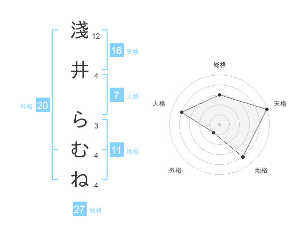 淺井 らむねさんを姓名の画数から五運を鑑定
