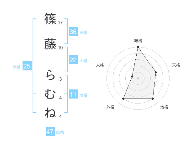 篠藤 らむねさんを姓名の画数から五運を鑑定