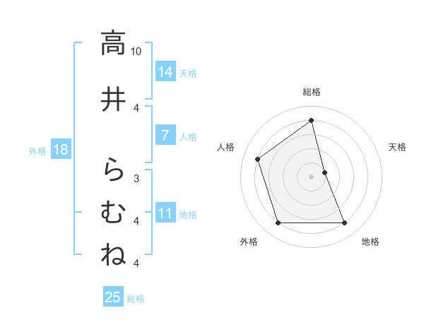高井 らむねさんの総格は25画の4点!