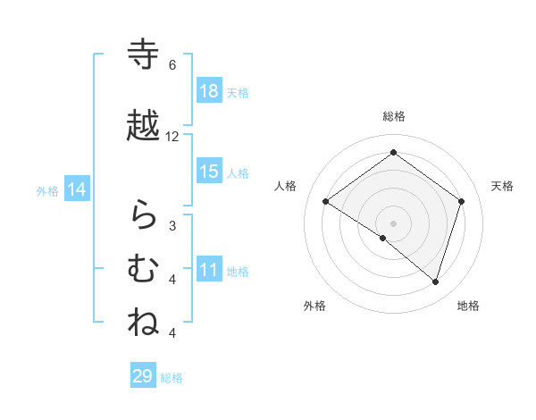 寺越 らむねさんを姓名の画数から五運を鑑定