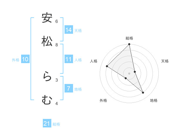 安松 らむさんの総格は21画の5点!