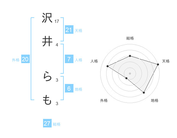 沢井 らもさんの天格は21画の5点!