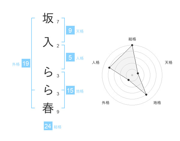 坂入 らら春さんを姓名の画数から五運を鑑定
