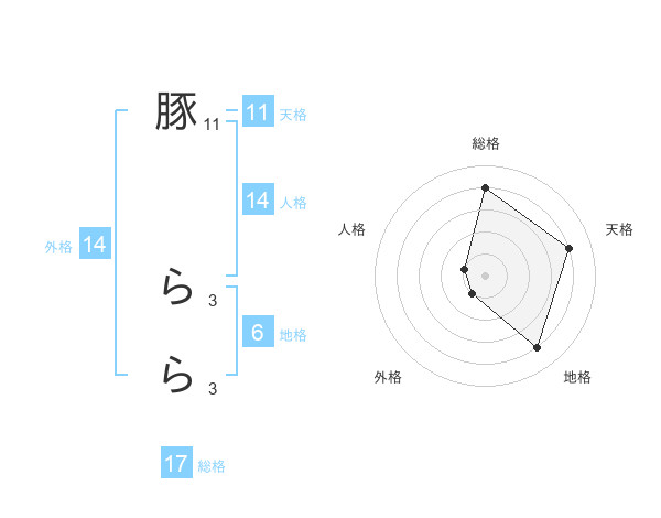 豚 ららさんの総格は17画の4点!