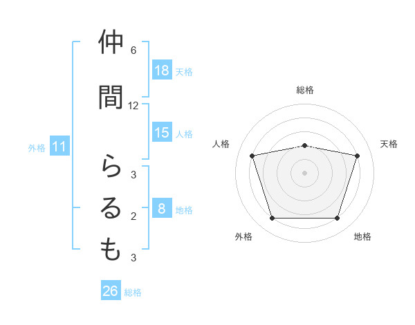 仲間 らるもさんを姓名の画数から五運を鑑定