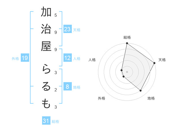 加治屋 らるもさんを姓名の画数から五運を鑑定