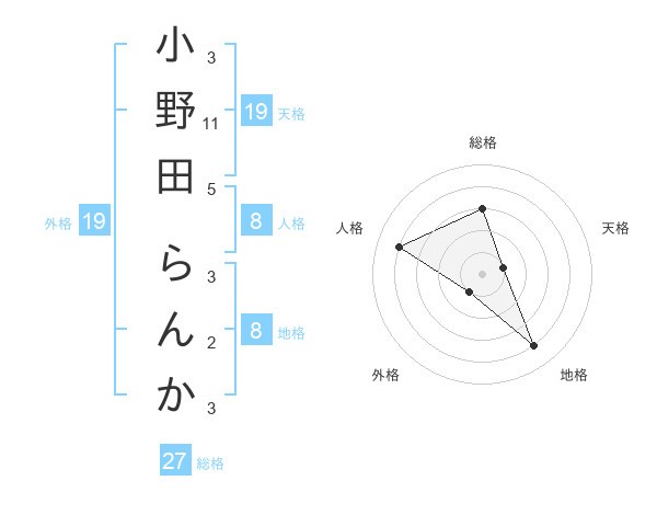 小野田 らんかさんを姓名の画数から五運を鑑定
