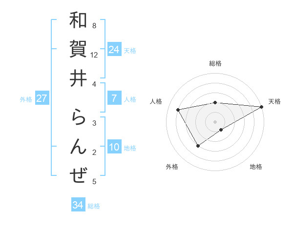 和賀井 らんぜさんの天格は24画の5点!