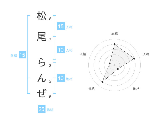 松尾 らんぜさんの天格は15画の4点!