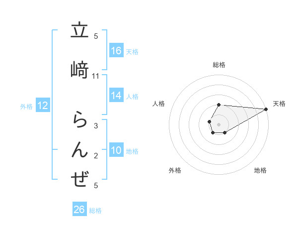 立﨑 らんぜさんを姓名の画数から五運を鑑定