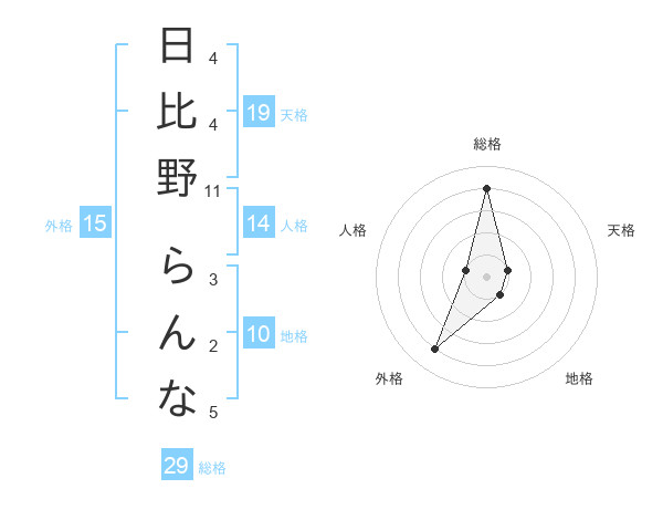 日比野 らんなさんを姓名の画数から五運を鑑定