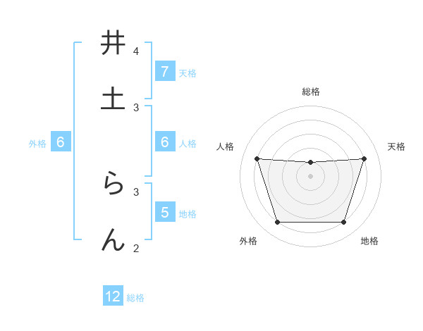 井土 らんさんの天格は7画の4点!