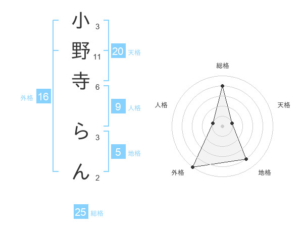 小野寺 らんさんの外格は16画の5点!