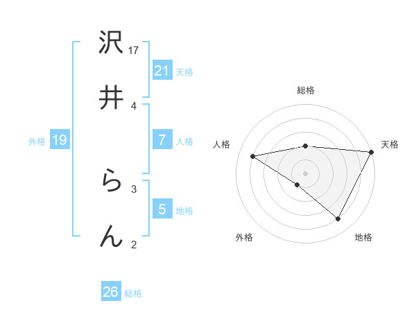 沢井 らんさんの総格は26画の2点!
