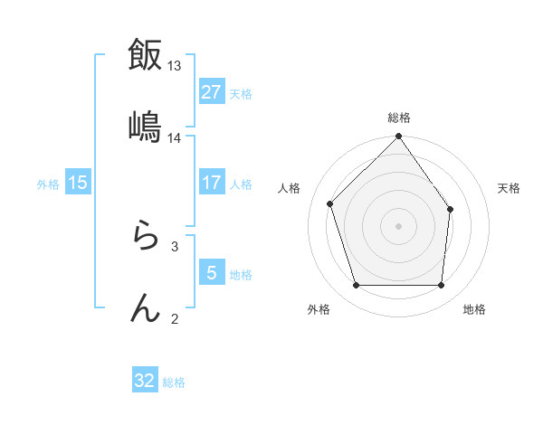 飯嶋 らんさんを姓名の画数から五運を鑑定