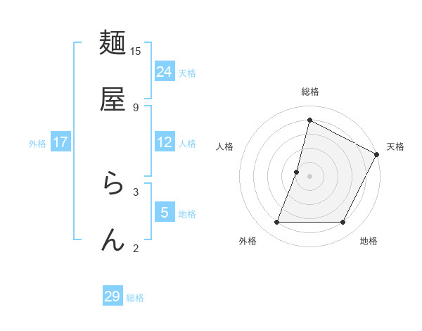 麺屋 らんさんを姓名の画数から五運を鑑定