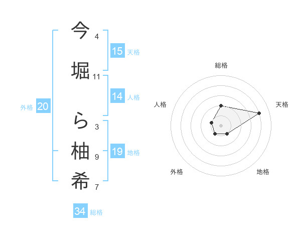 今堀 ら柚希さんを姓名の画数から五運を鑑定