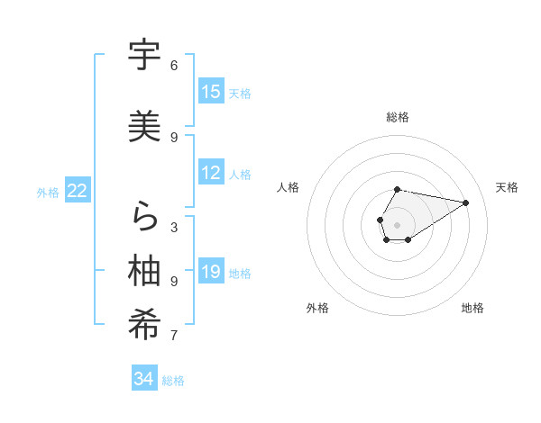 宇美 ら柚希さんの総格は34画の2点!