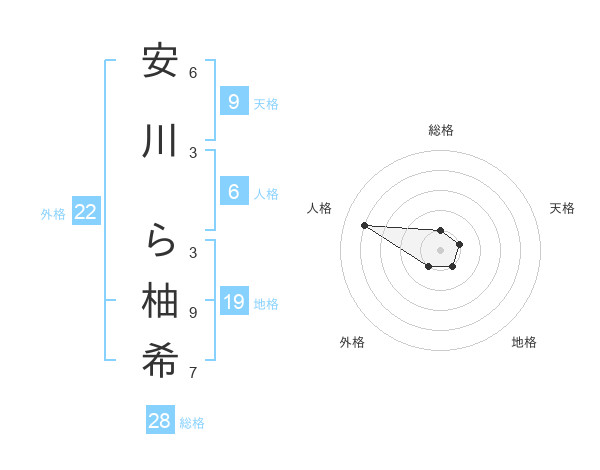 安川 ら柚希さんの総格は28画の1点!