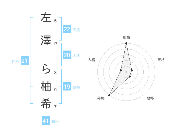 左澤 ら柚希さんを姓名の画数から五運を鑑定