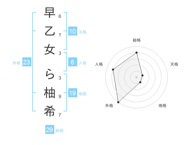 早乙女 ら柚希さんの総格は29画の4点