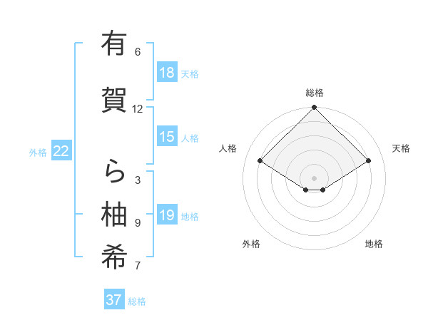 有賀 ら柚希さんの総格は37画の5点!