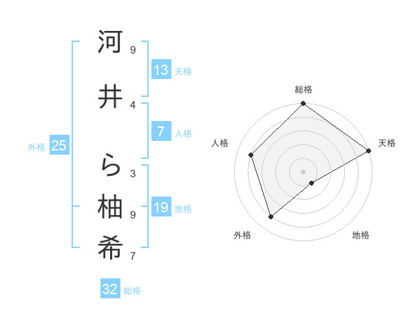 河井 ら柚希さんの天格は13画の5点!
