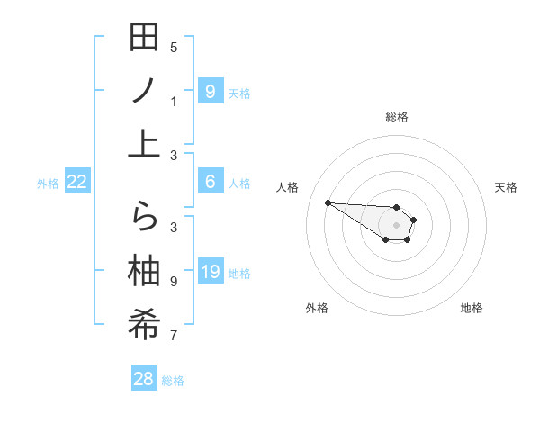 田ノ上 ら柚希さんの総格は28画の1点!