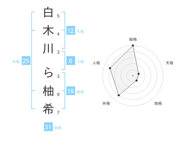 白木川 ら柚希さんを姓名の画数から五運を鑑定