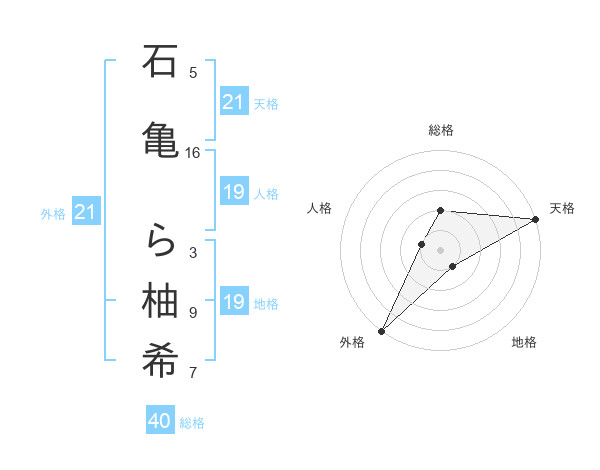 石亀 ら柚希さんの外格は21画の5点!