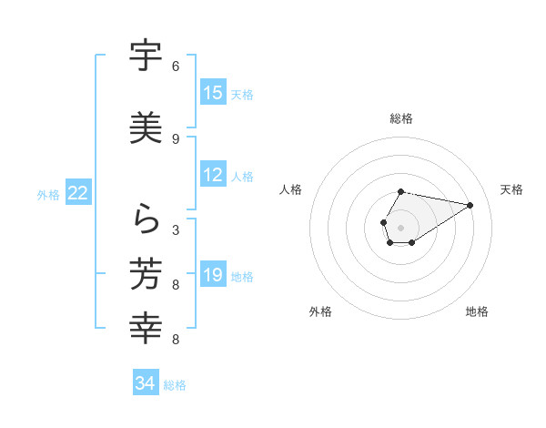 宇美 ら芳幸さんを姓名の画数から五運を鑑定
