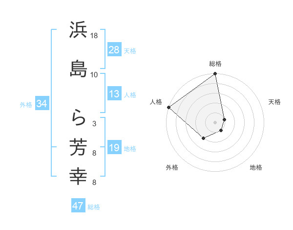 浜島 ら芳幸さんの総格は47画の5点