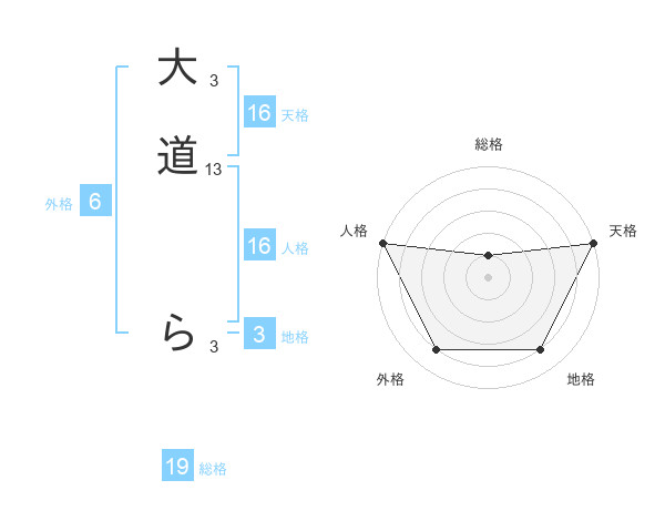大道 らさんの天格は16画の5点!