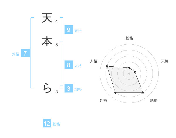 天本 らさんの総格は12画の1点!
