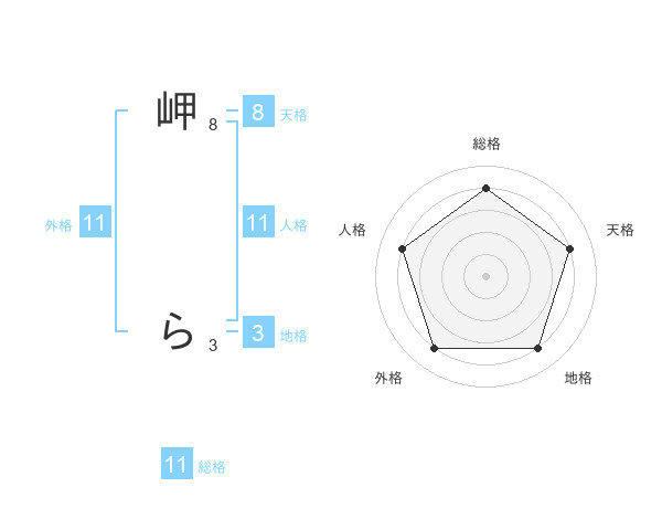 岬 らさんの総格は11画の4点!