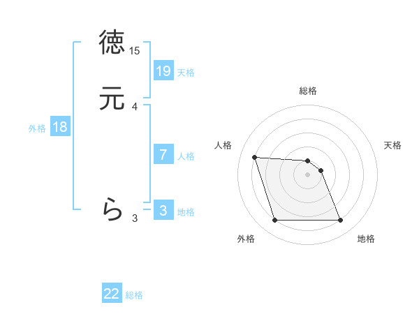 徳元 らさんの外格は18画の4点!