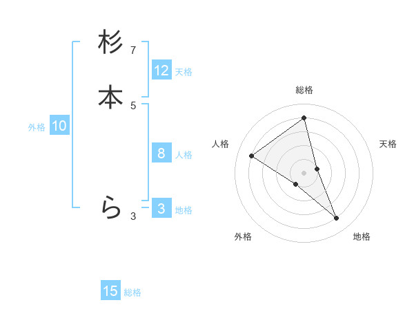 杉本 らさんの総格は15画の4点!