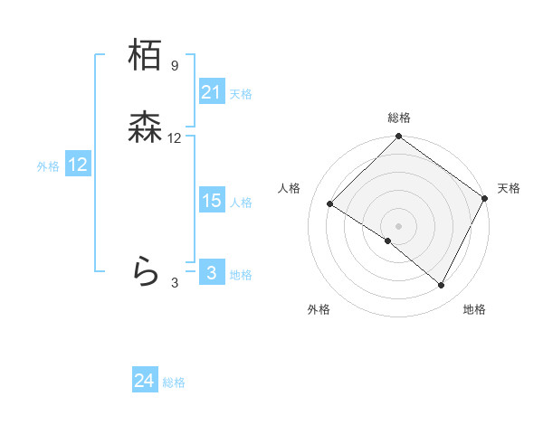栢森 らさんの総格は24画の5点!