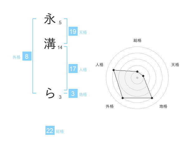 永溝 らさんを姓名の画数から五運を鑑定