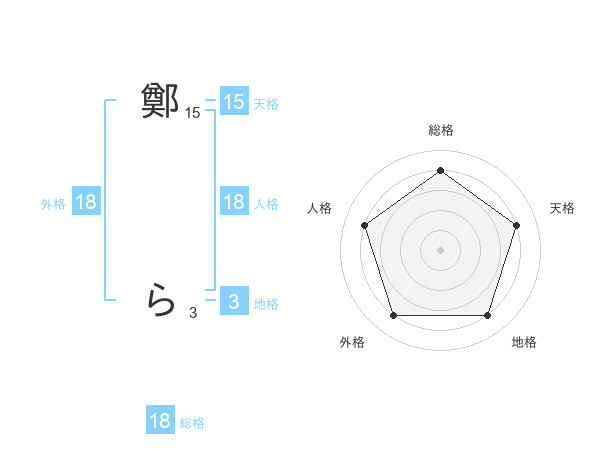 鄭 らさんの総格は18画の4点!