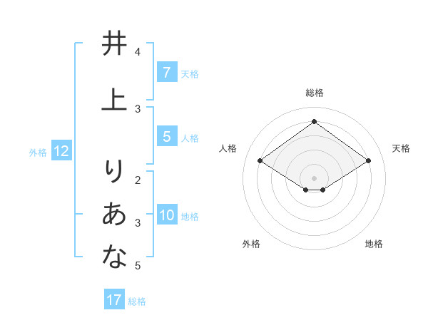 井上 りあなさんを姓名の画数から五運を鑑定