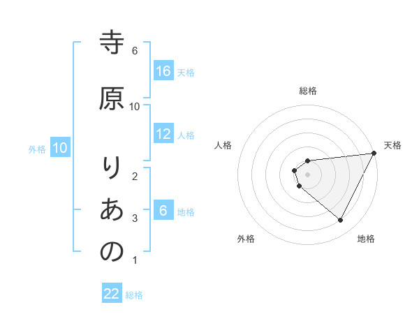 寺原 りあのさんの天格は16画の5点!