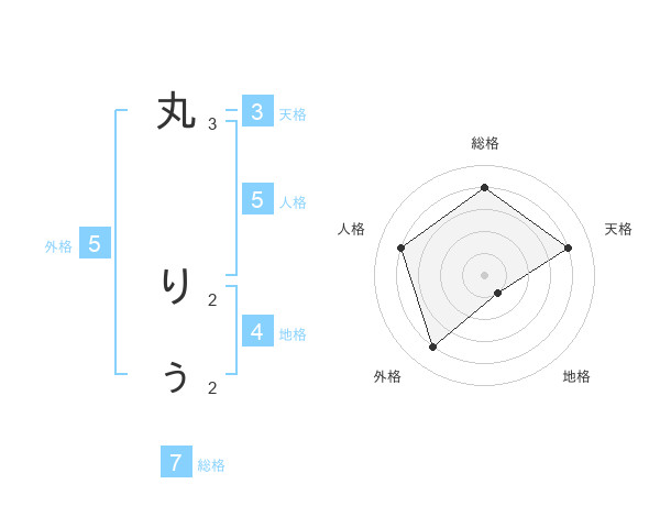 丸 りぅさんの総格は7画の4点!