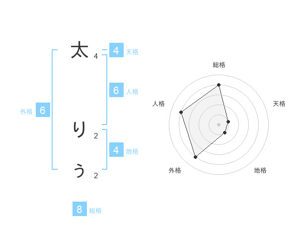 太 りぅさんの総格は8画の4点!