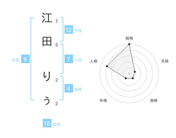 江田 りぅさんの総格は16画の5点!