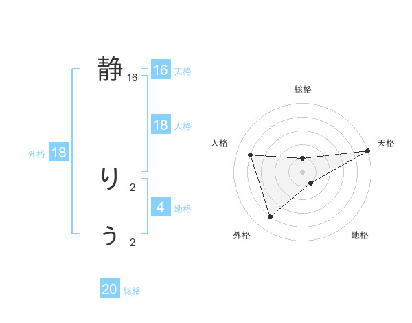 静 りぅさんの総格は20画の1点!