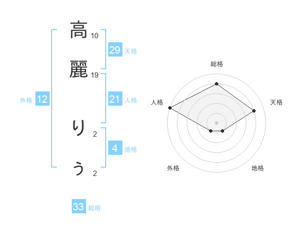 高麗 りぅさんを姓名の画数から五運を鑑定