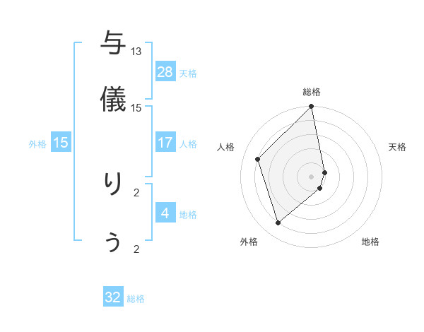 与儀 りぅさんを姓名の画数から五運を鑑定