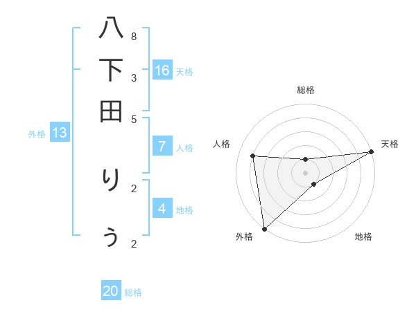 八下田 りぅさんを姓名の画数から五運を鑑定
