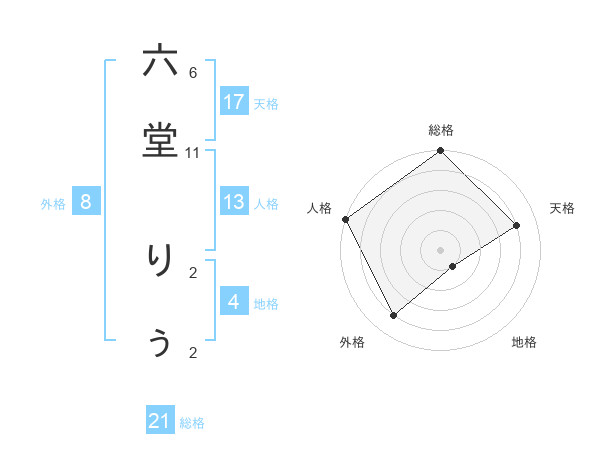 六堂 りぅさんを姓名の画数から五運を鑑定